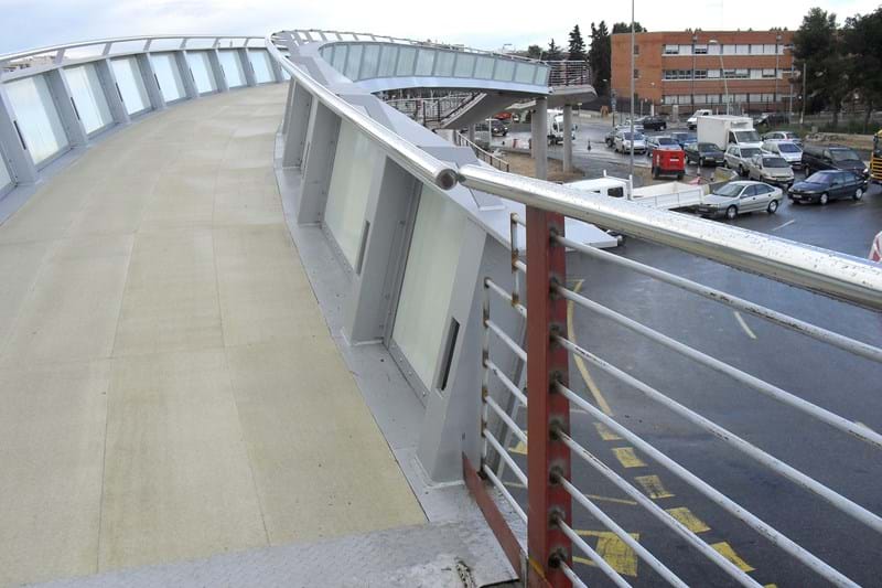 The Tarragona bridge straddles a busy motorway, and the fact that the fibreglass material is weatherproof and non-corrosive, and therefore requires no maintenance, is advantageous for both motorists and bridge operators.
