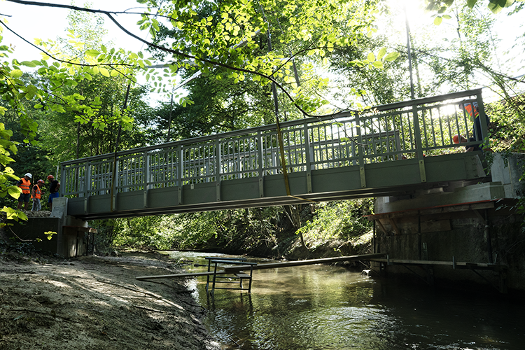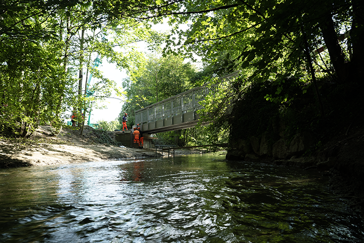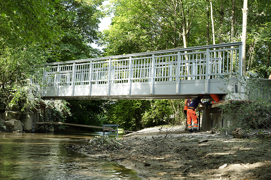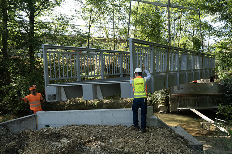 âWe had never assembled a bridge ourselves before, and given the limited space, we quickly came to the conclusion that it would be best to install the bridge as a complete prefabricated element,â explains Timon Bucher, Managing Director at URBANUM AG.