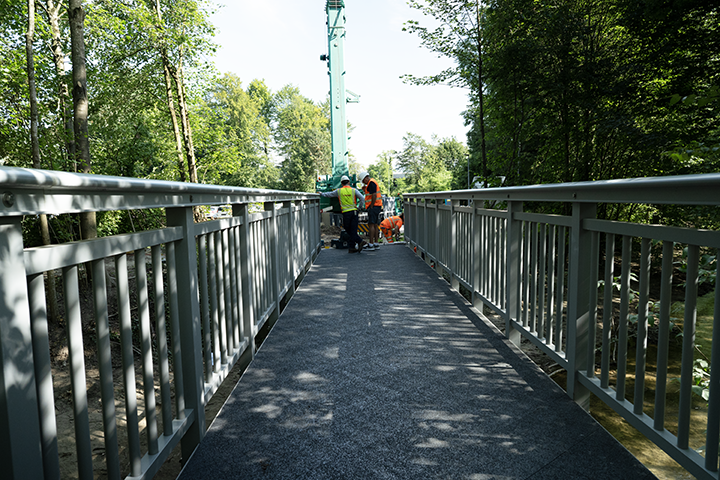 Safety was the top priority during the design process, particularly regarding the usability of the bridge in all weather conditions. âIt was essential for us that the bridge could be safely used by pedestrians and cyclists, regardless of the weather. A non-slip surface was therefore indispensable,â explains Timon Bucher.