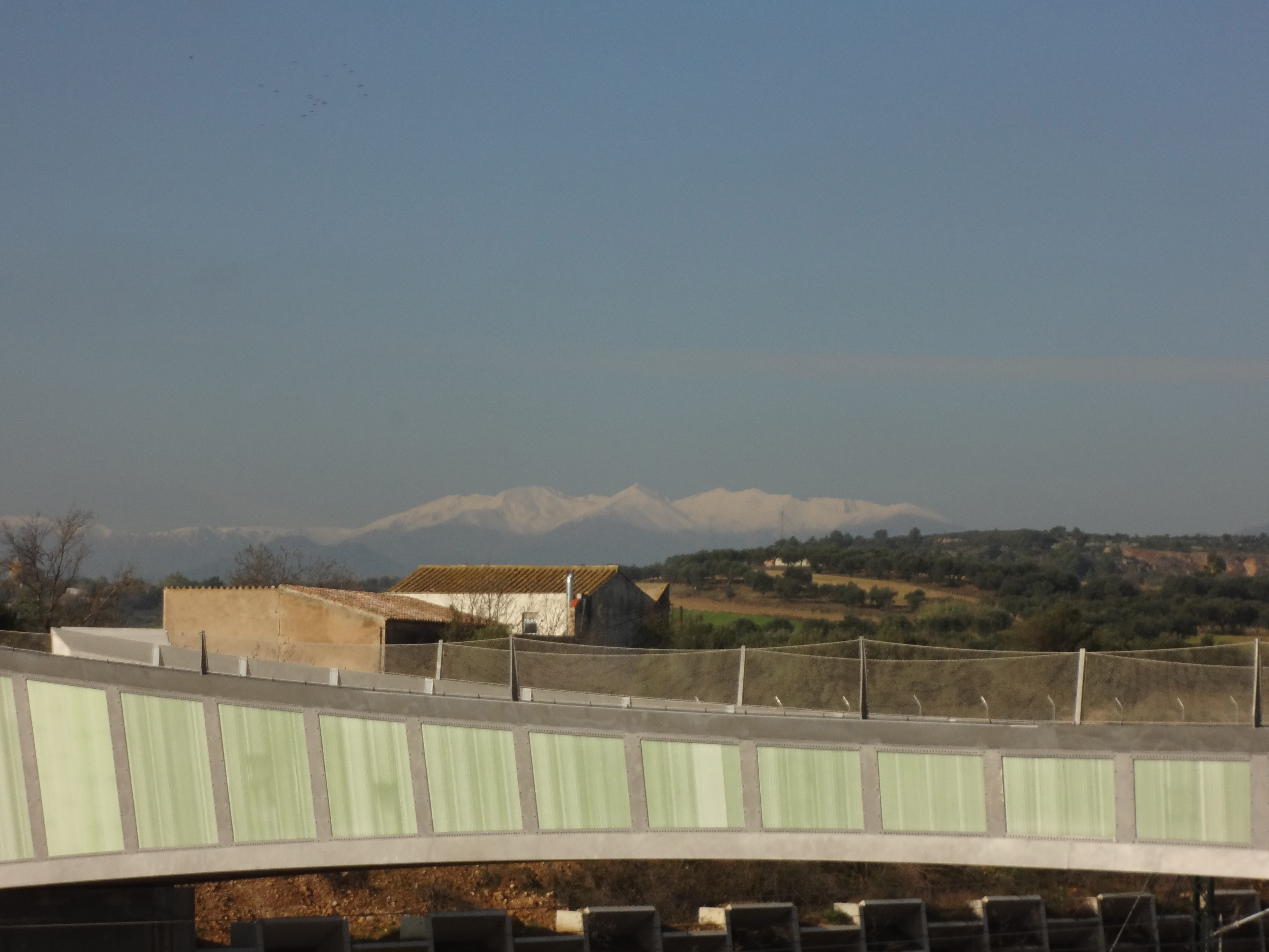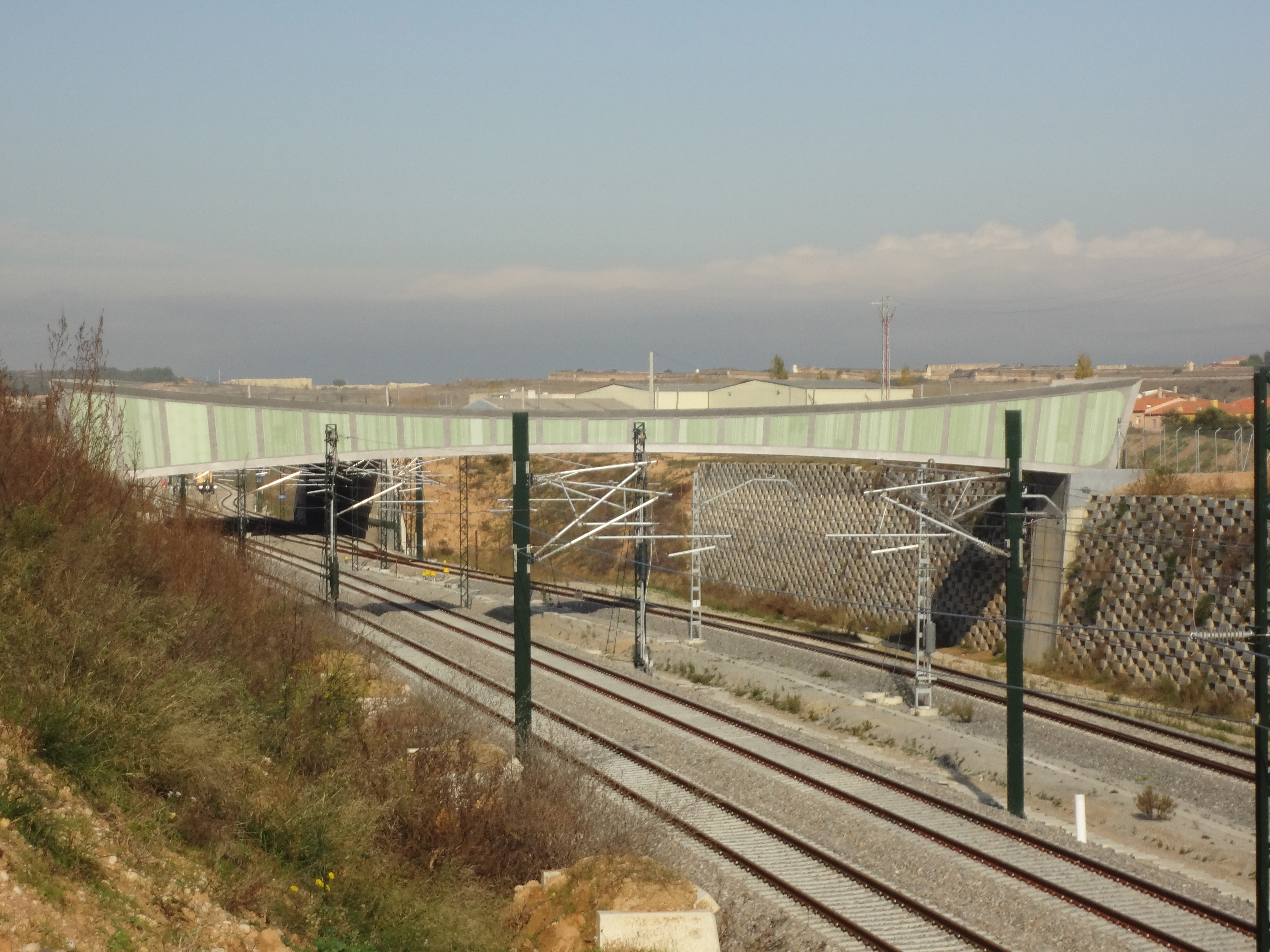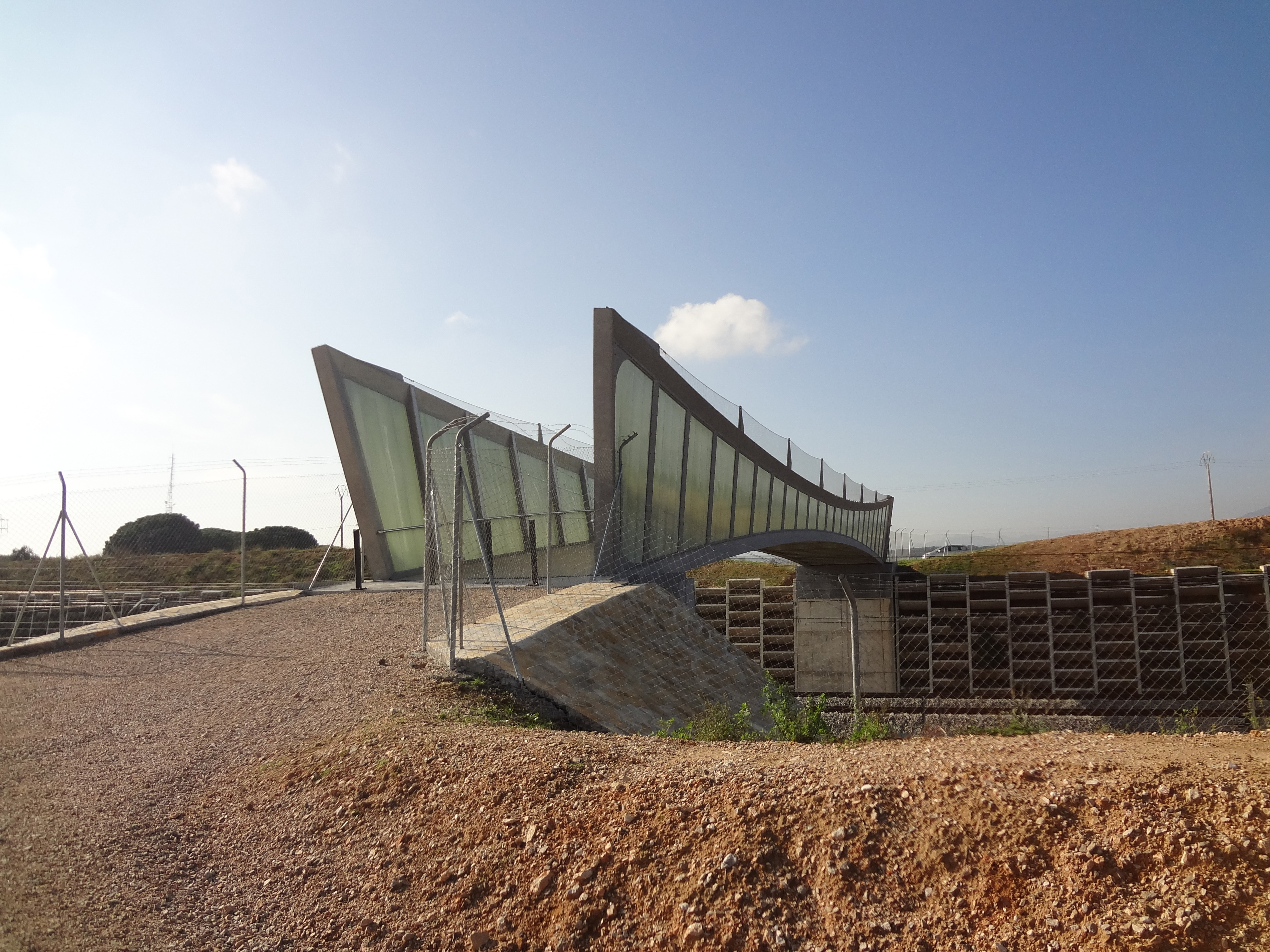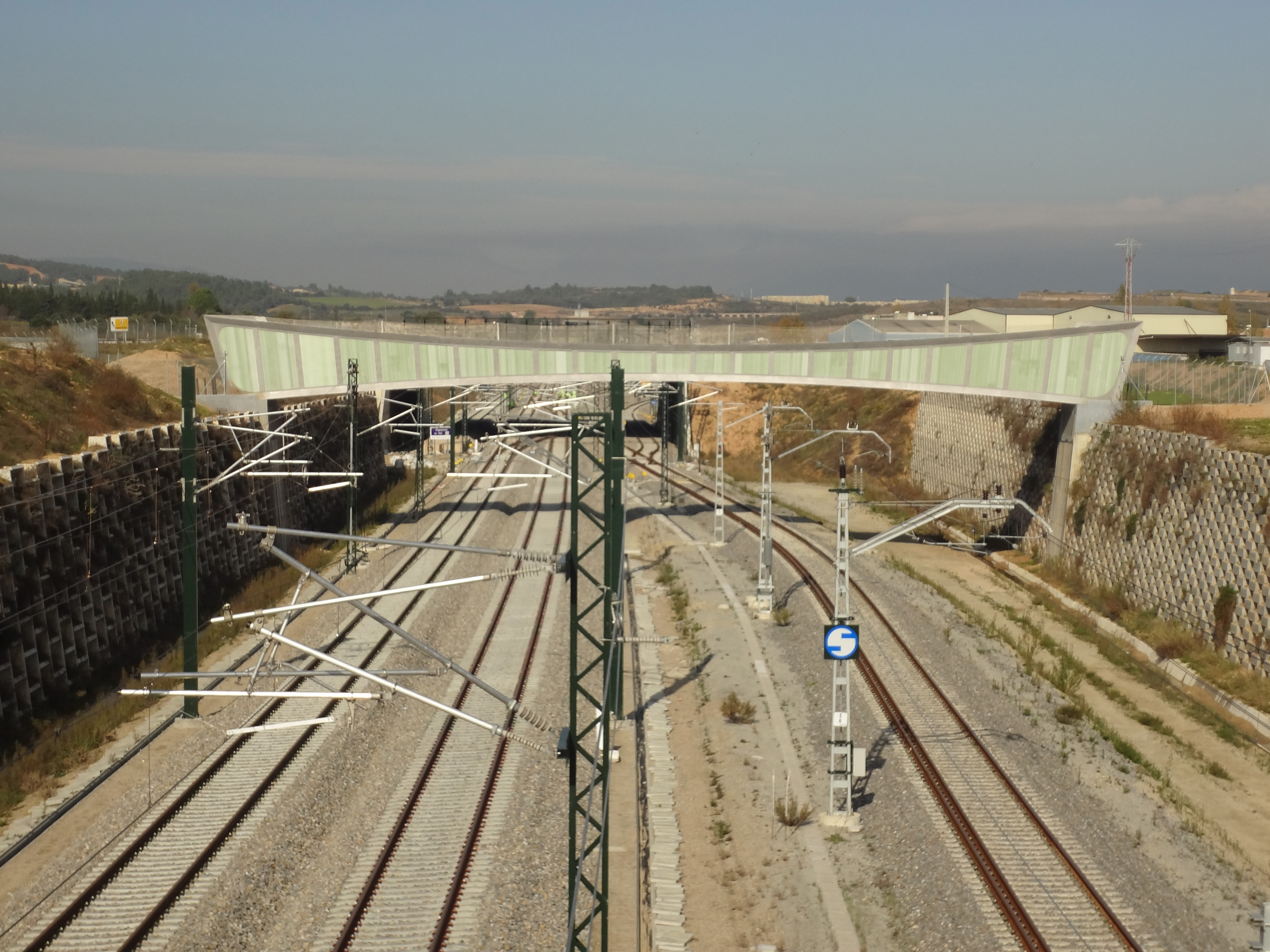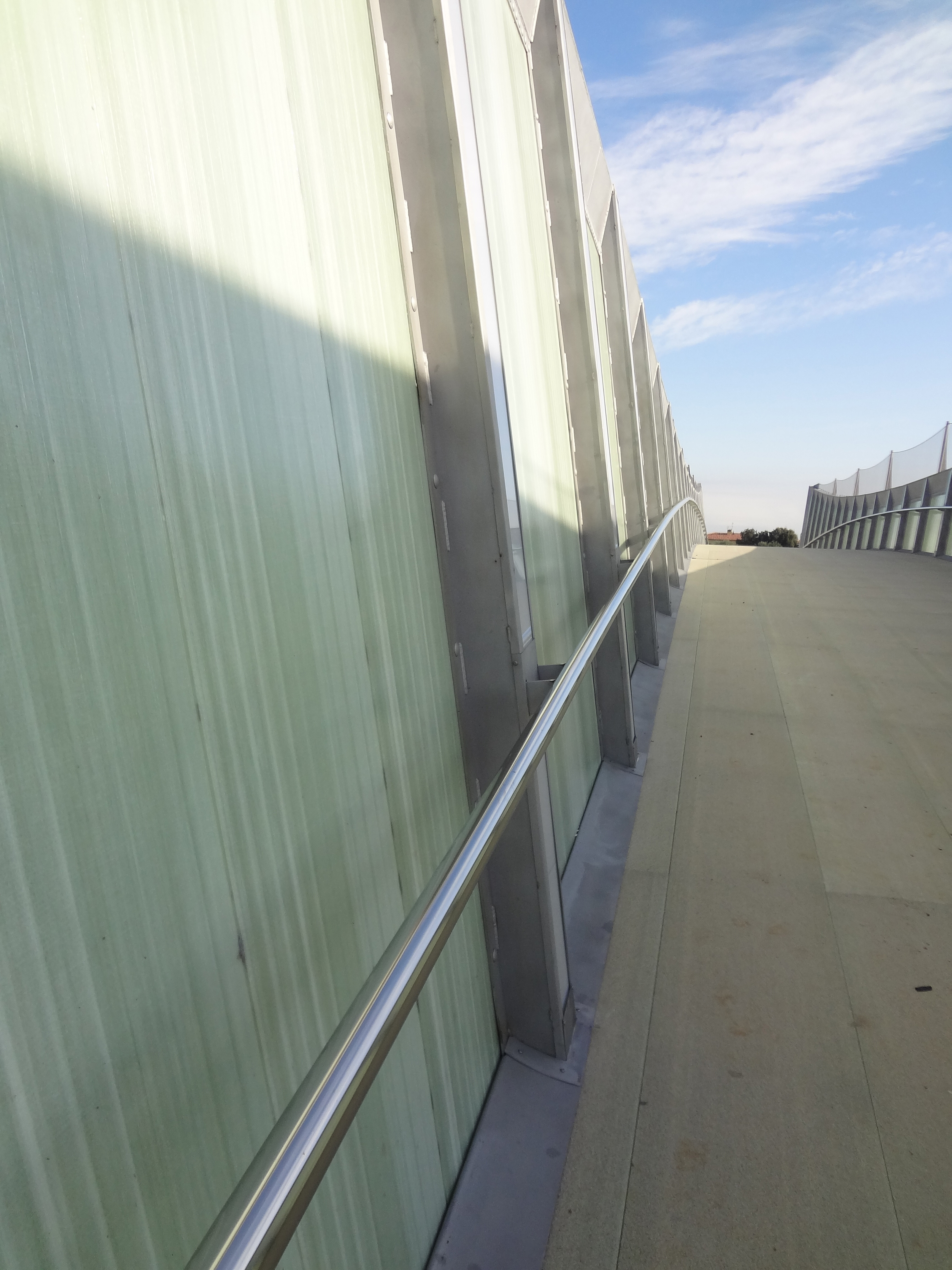 This pedestrian and cycle bridge has been carefully designed for its location, which is on the high-speed railway line between Barcelona and France. For safety reasons the sides of the bridge reach a height of 3.4 m at their highest point, ensuring that pedestrians and cyclists are untroubled by passing trains and the air pressure they create.