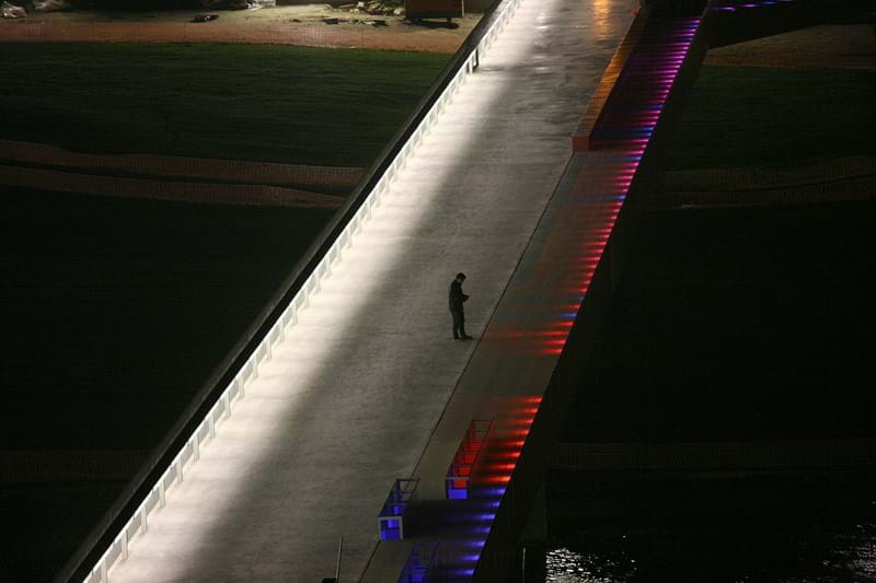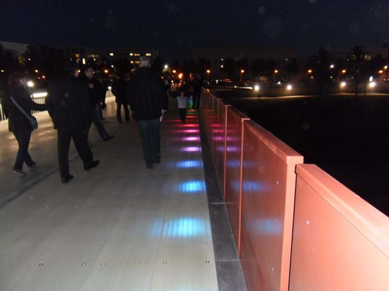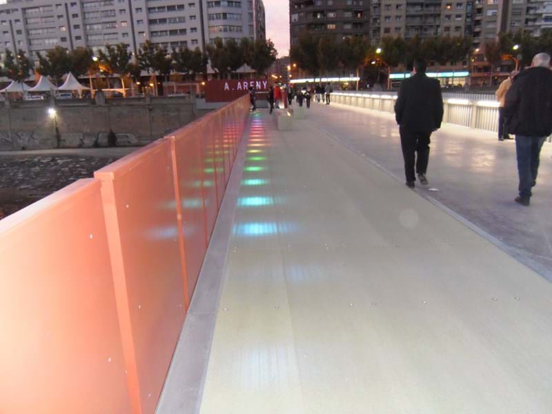 The Lleida bridge embraces a variety of roles, which is reflected both in the design of the bridge itself and the complexion of the Lay Light bridge deck. The main bridge is provided with a non-slip surface, its primary focus being on the movement of pedestrians and cyclists.