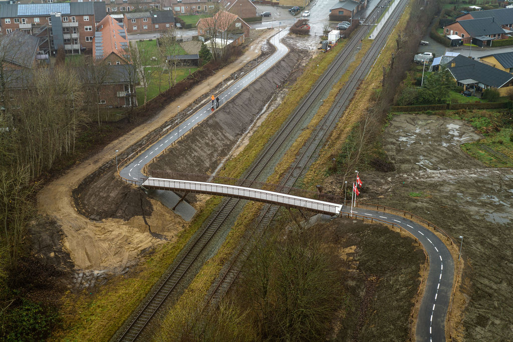 With a length of 30 meters and a width of three meters, the bridge creates an essential connection between Tangsøparken and the new residential areas near TvÌrgade. The bridge makes it easier for residents to cross the railway tracks and provides quick access to Hammerum.