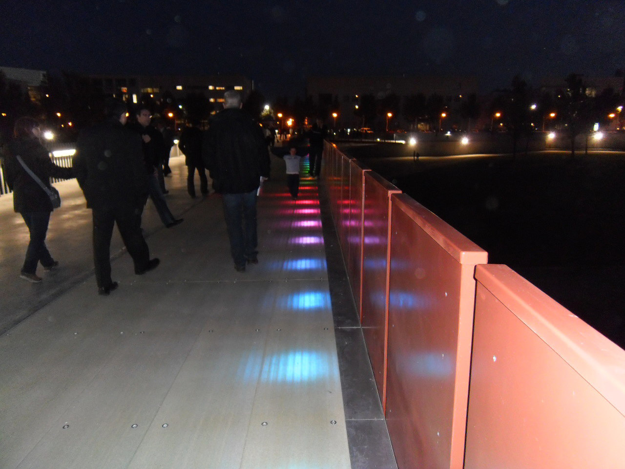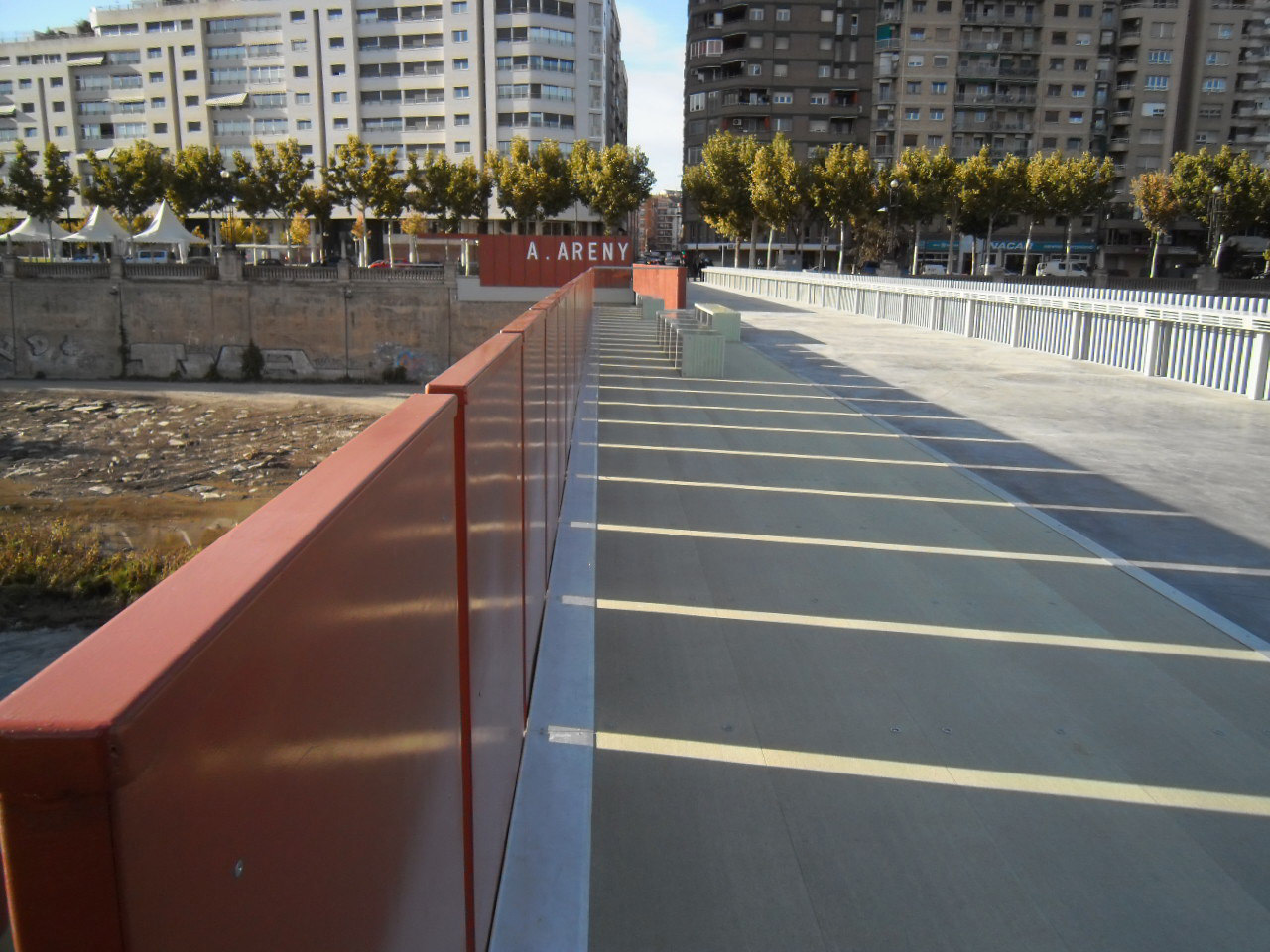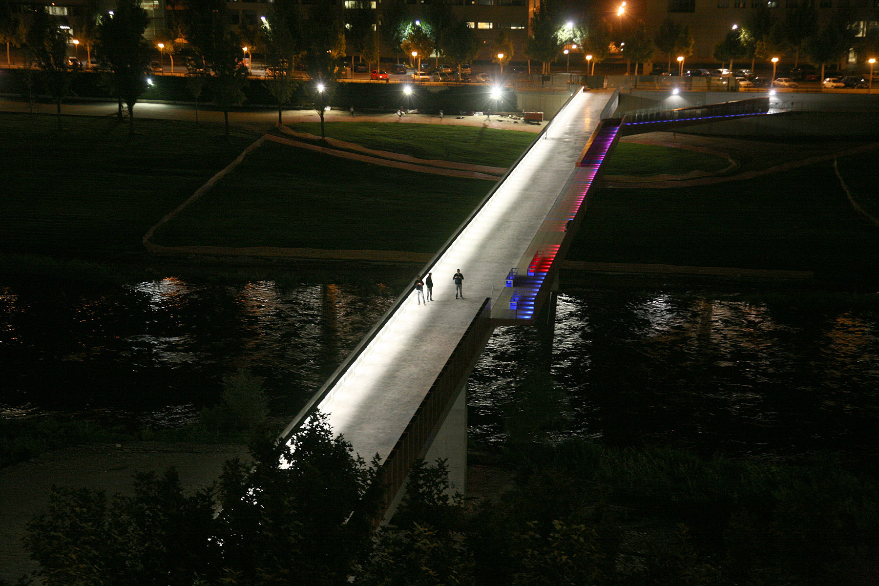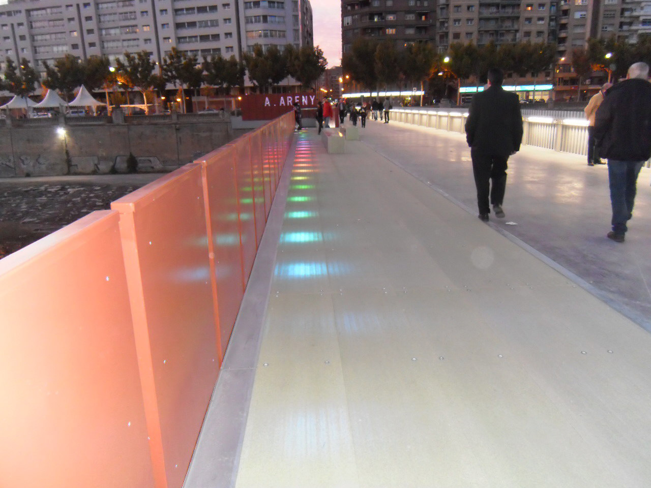 Broen fører over floden Rio Segre og forbinder centrum med byens universitet, University of Lleida. Her er der desuden placeret en stor pavillon beklÌdt med Lay Light, som byder gÌster velkommen til campussiden. Det er dog ikke kun de designmÌssige muligheder, der gør Lay Light velegnet til netop denne placering. Glasfibermaterialet er nemlig korrosionsbestandigt og dermed modstandsdygtig over for püvirkninger fra büde floden og vejret.