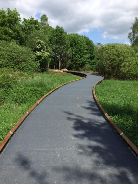 Stisystemet snor sig henover et sumpet terræn, igennem en lille skov for til sidst at krydse bækken. Et barskt miljø, hvor vejrlig påvirkning har en markant indvirkning på konstruktionernes levetid. Med glasfiber får kommunen et brodæk, der hverken rådner, ruster eller kræver maling og man kan derfor ikke alene se frem til færre eftersyn, men også færre omkostninger til drift og vedligehold.