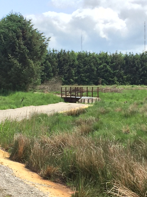 Vådområde mellem Herning og Snejbjerg. Hybridløsning med hårdttræ og Fiberline HD planke. Stibro: længde: 10,5 m, bredde: 2,5 Stiforløb: længde: 30 m, bredde: 5,8 m Belastning: fodgængerbro