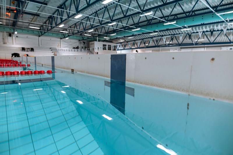"Svømning i dag indebĂŚrer, at man svømmer bĂĽde pĂĽ lange og korte baner. Med et 50 meters bassin har vi behov for at kunne indrette en kortbane â det vil sige en 25 meters bane. Derfor er det nødvendigt for os at have en bro som den fra Fiberline, som vi kan sĂŚnke ned for at skabe et 25 meters bassin."