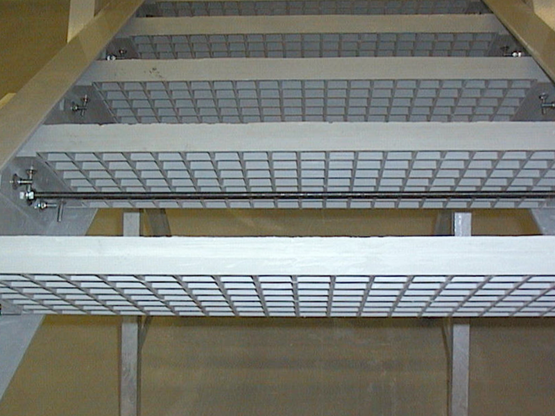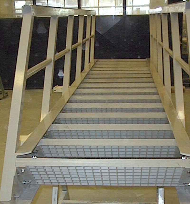 GFK-Stufen, gebaut mit Fiberline-Bauprofilen und Gitterrosten