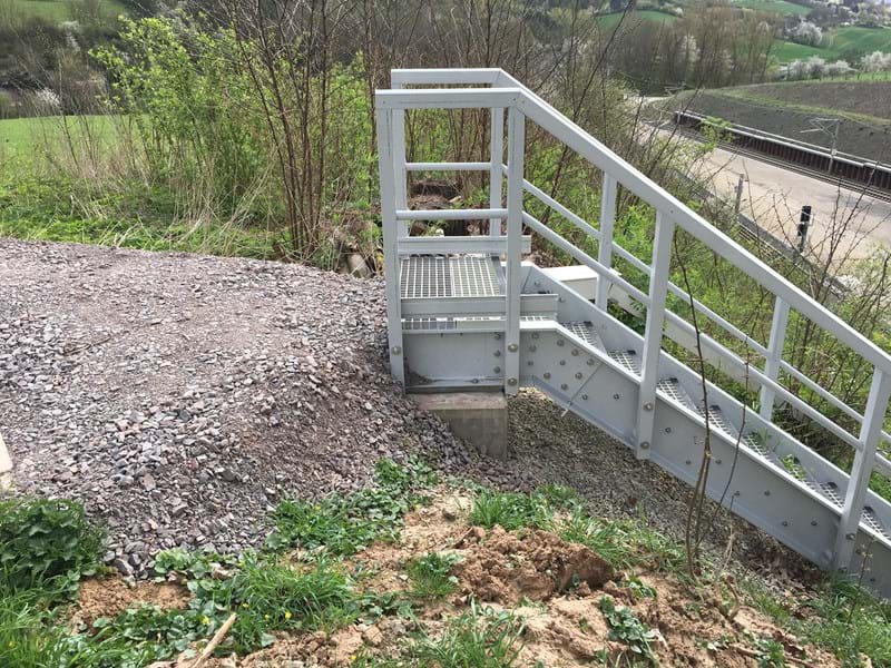Gleiskörper sind oft schwer zugänglich. Dies war auch im steilen Gelände bei der Tunnelanlage der Fall. Hier ist es von besonderem Vorteil, dass die relativ leichten GFK-Konstruktionen weitgehend vormontiert werden konnten.