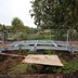 Um das Erdreich zu schützen, wurde das vormontierte GFK-Brückendeck für die letzten Meter vom Lkw auf ein leichteres Fahrzeug umgeladen. Die abschließenden Anpassungen der Leichtbaukonstruktion wurden ‚von Hand‘ vorgenommen.