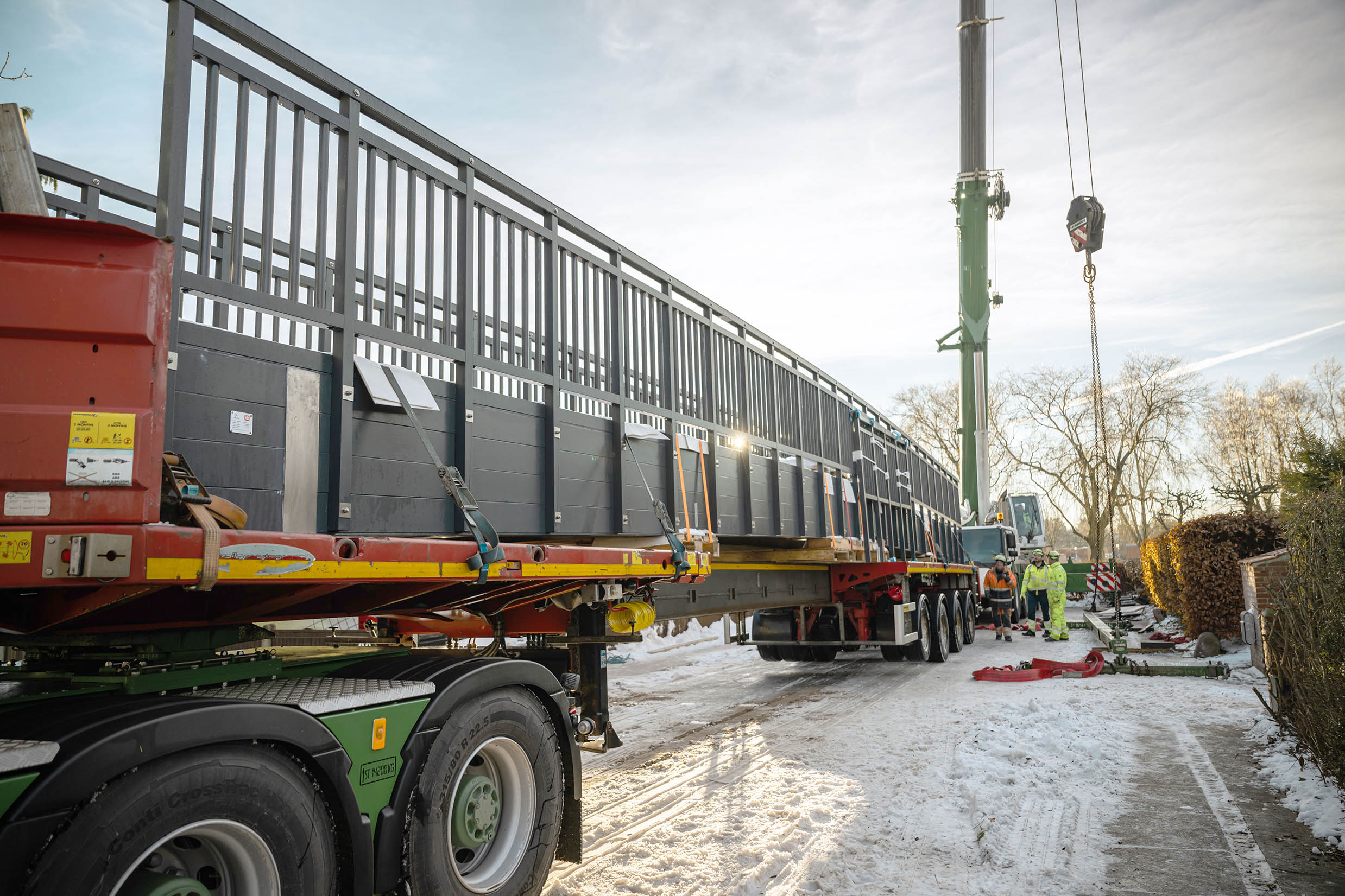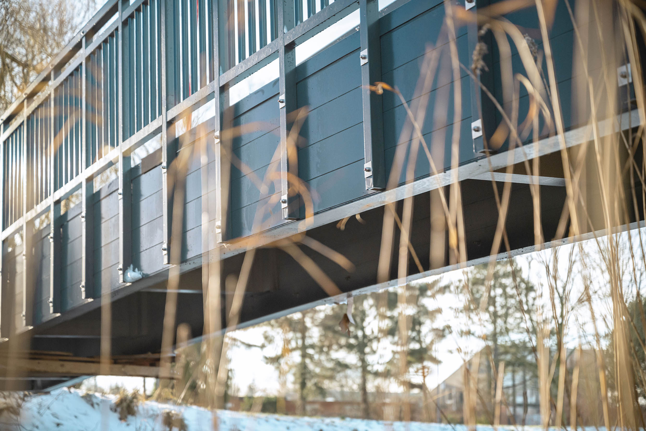 FĂźr optimale Rutschfestigkeit und sichere Begehbarkeit besteht das BrĂźckendeck aus robusten Ultra-Duty-Planken mit Sandbelag. Die BrĂźcke erfĂźllt hĂśchste Konstruktionsnormen und kann problemlos von einem 3,5 Tonnen schweren Servicewagen befahren werden.
