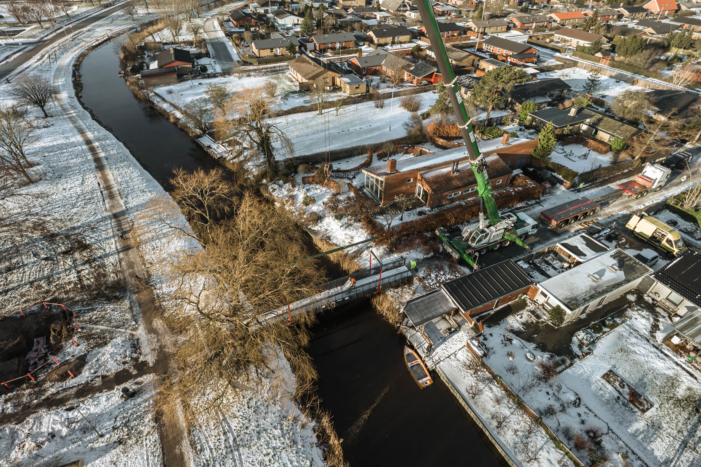 Diese FuĂgängerbrĂźcke, erstellt in Zusammenarbeit mit der Gemeinde Norddjurs und dem Bauunternehmen Kaj Bech A/S, ist ein herausragendes Beispiel fĂźr Innovation und technisches Know-how.