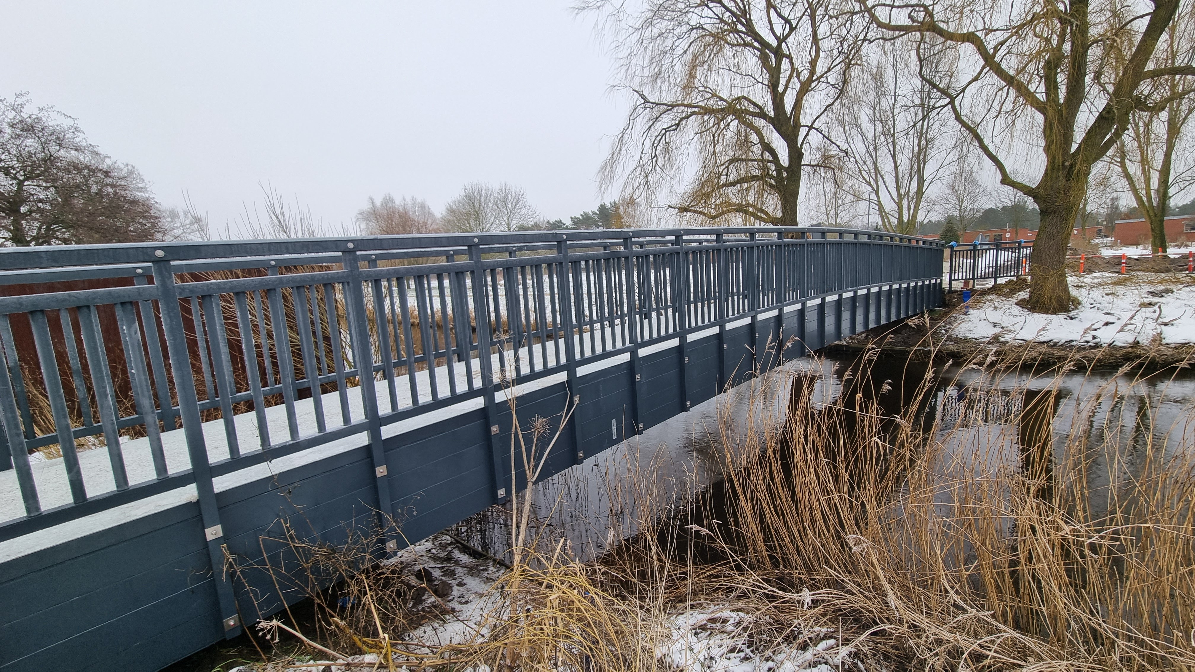 Die dänische Stadt GrenĂĽ in der Gemeinde Norddjurs hat sich dafĂźr entschieden, die alte HolzbrĂźcke Ăźber den Fluss GrenĂĽ durch eine maĂgeschneiderte, innovative GFK-BrĂźcke zu ersetzen. Die neue Konstruktion beeindruckt mit einer Spannweite von 17,7 Metern, einer Breite von 1,7 Metern und einem Gewicht von nur 4200 Kilogramm. In enger Zusammenarbeit mit dem Bauunternehmen Kaj Bech A/S wurde die neue BrĂźcke mit einer hybriden Unterkonstruktion aus quadratischen GFK-Rohren präzisionsgefertigt und mit Carbonfaserlamellen verstärkt, die eine hohe Festigkeit und Steifigkeit bei gleichzeitig geringem Gewicht gewährleisten.