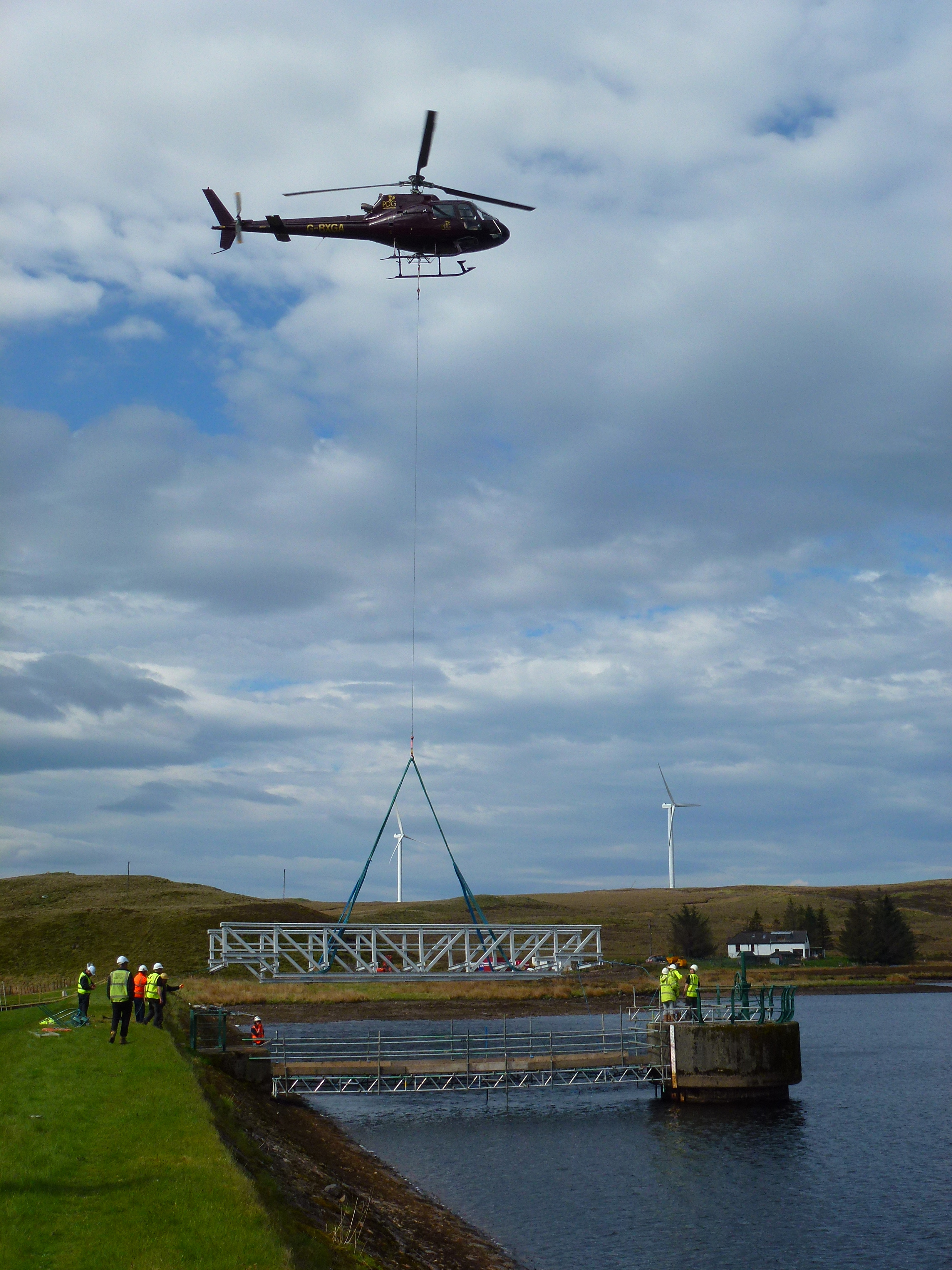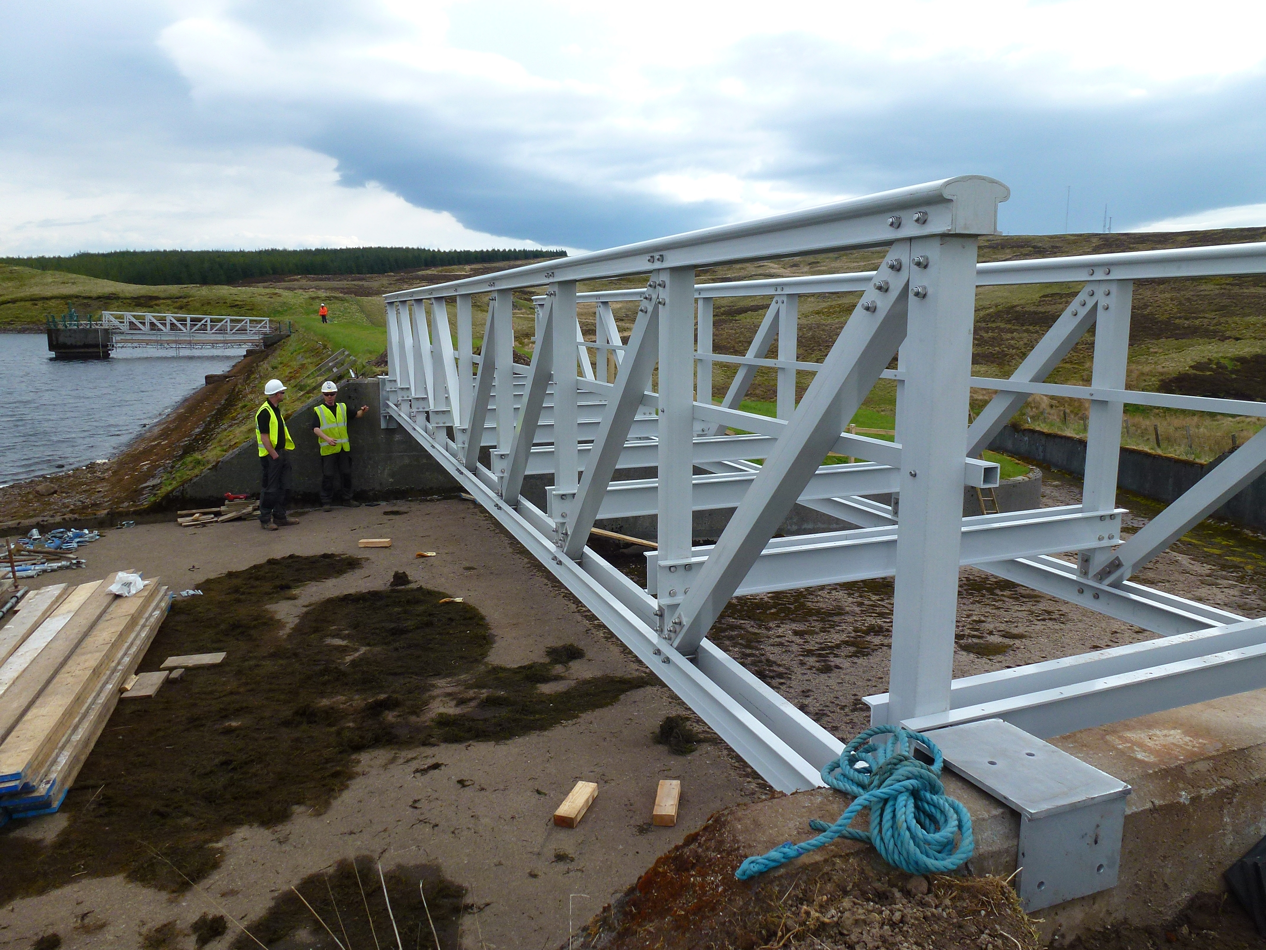 Da der von Scottish Water betriebene Stausee Earlsburn Reservoir nicht Ăźber StraĂen erreichbar ist, stellte der Austausch von zwei bestehenden WartungsbrĂźcken eine besondere logistische Herausforderung dar.