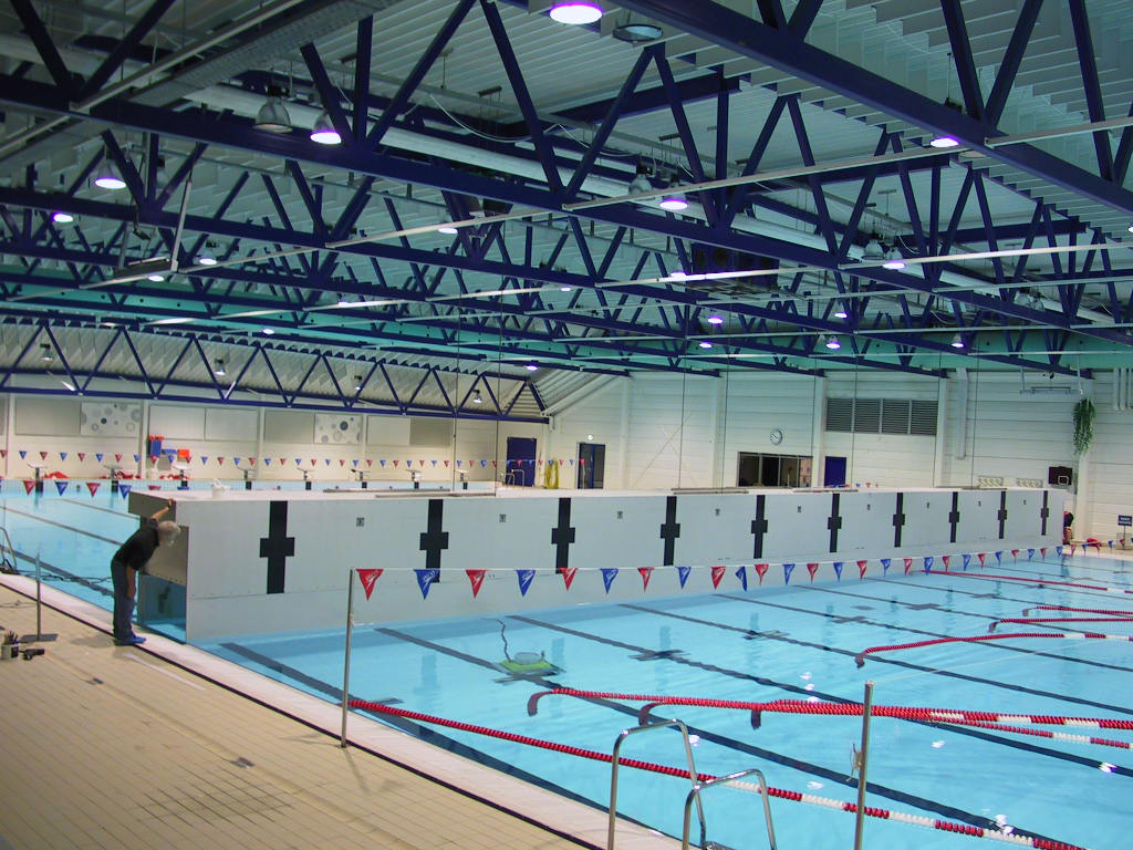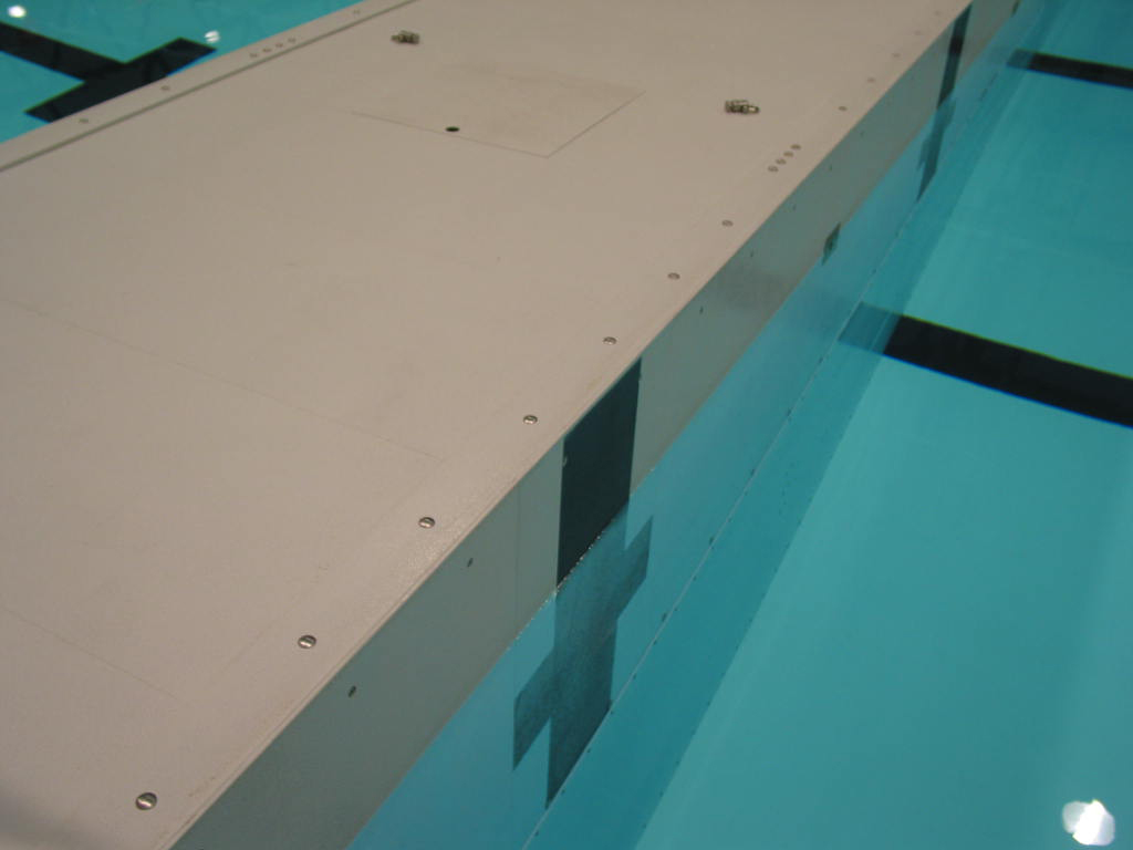Das Schwimmstadion Ă rhus benĂśtigte fĂźr die Ausrichtung von Kurzbahn-Veranstaltungen einen Beckenteiler. Eine zunächst erwägte Edelstahl-LĂśsung wurde wegen der zu erwartenden Korrosionsprobleme aufgegeben. Stattdessen entschied man sich fĂźr eine GFK-LĂśsung, eine 25 m lange Beckenteiler-HebebrĂźcke, die sich seither so hervorragend bewährt, dass auch andere Schwimmhallen groĂes Interesse zeigen. Die GFK-Konstruktion weist derart hohe Festigkeit und Steifigkeit auf, dass sie den Schwimmern beim Wenden ebenso âunnachgiebigâ vorkommt wie der Beckenrand. Officials etc. kĂśnnen den Beckenteiler als BrĂźcke benutzen.