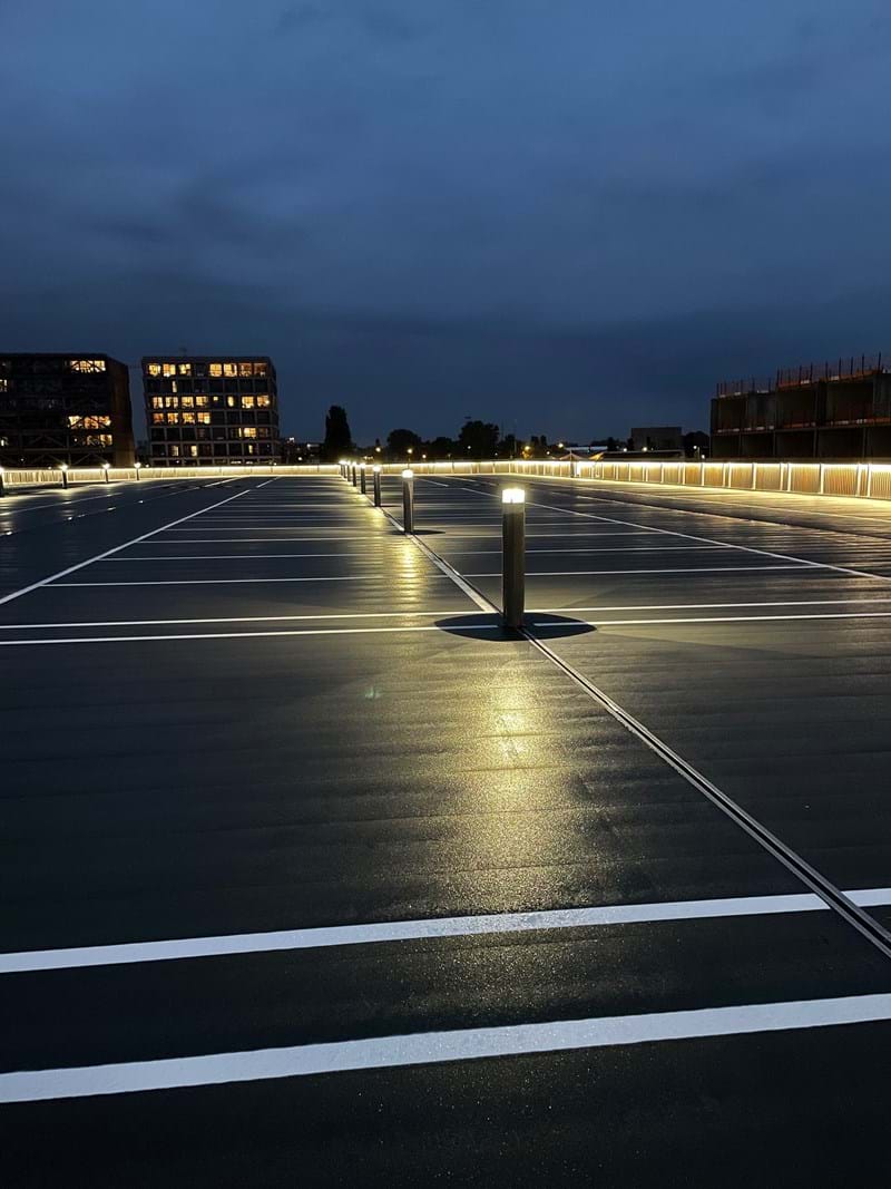 Do tej pory wybudowano 5 garaży z łączną liczbą 2800 miejsc parkingowych. Wszystkie posiadają stanowiska ładowania samochodów elektrycznych na parterze, oświetlenie LED oraz elewacje nadające się do ponownego wykorzystania. W przyszłych projektach panele fotowoltaiczne zamontowane na dachach będą wytwarzać energię elektryczną i zasilać nią bezpośrednio zaparkowane samochody.