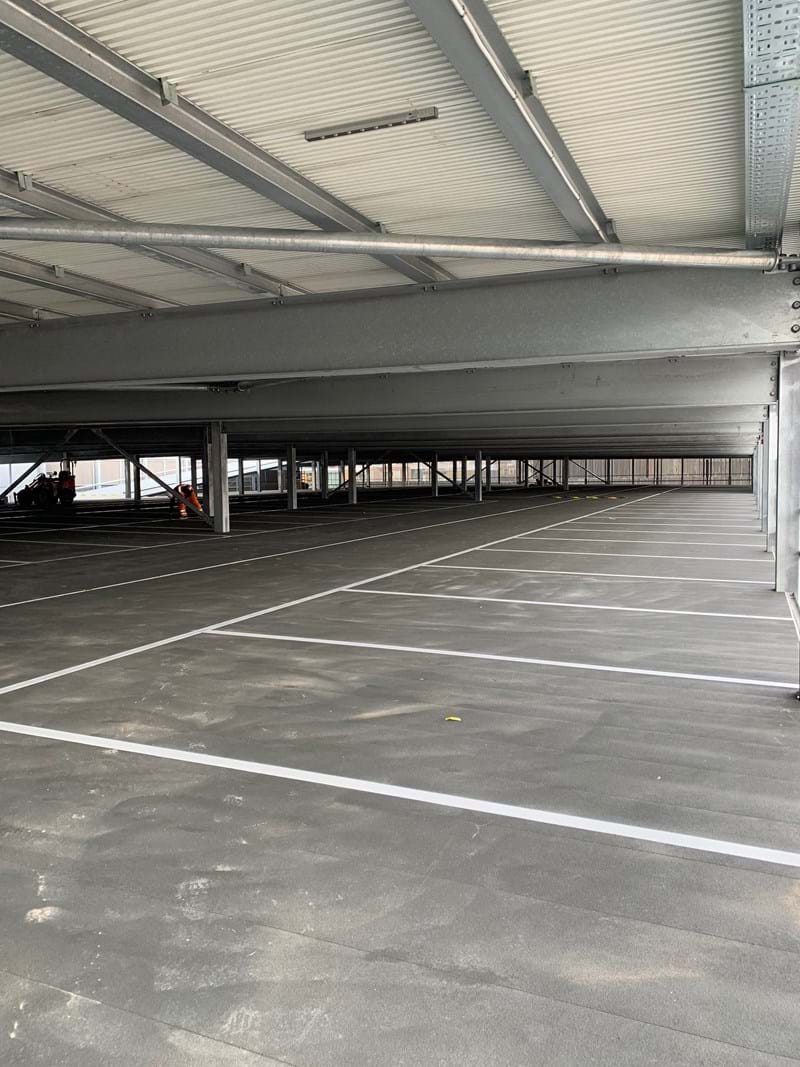 Garaże oparte są na w pełni modułowej koncepcji, w której stalowe słupy i dźwigary mogą być stosowane na każdej kondygnacji w każdym narożniku i montowane do wysokości 5 kondygnacji. Ta metoda budowy pozwala klientowi na wybór wymiarów garażu i tym samym optymalne wykorzystanie działki budowlanej - więcej informacji można znaleźć tutaj. Montaż parkingu z 500 miejscami postojowymi trwa tylko 12 tygodni!