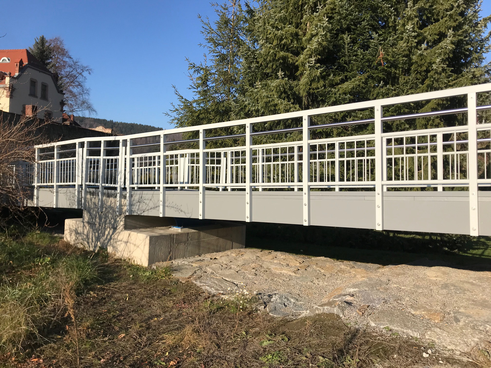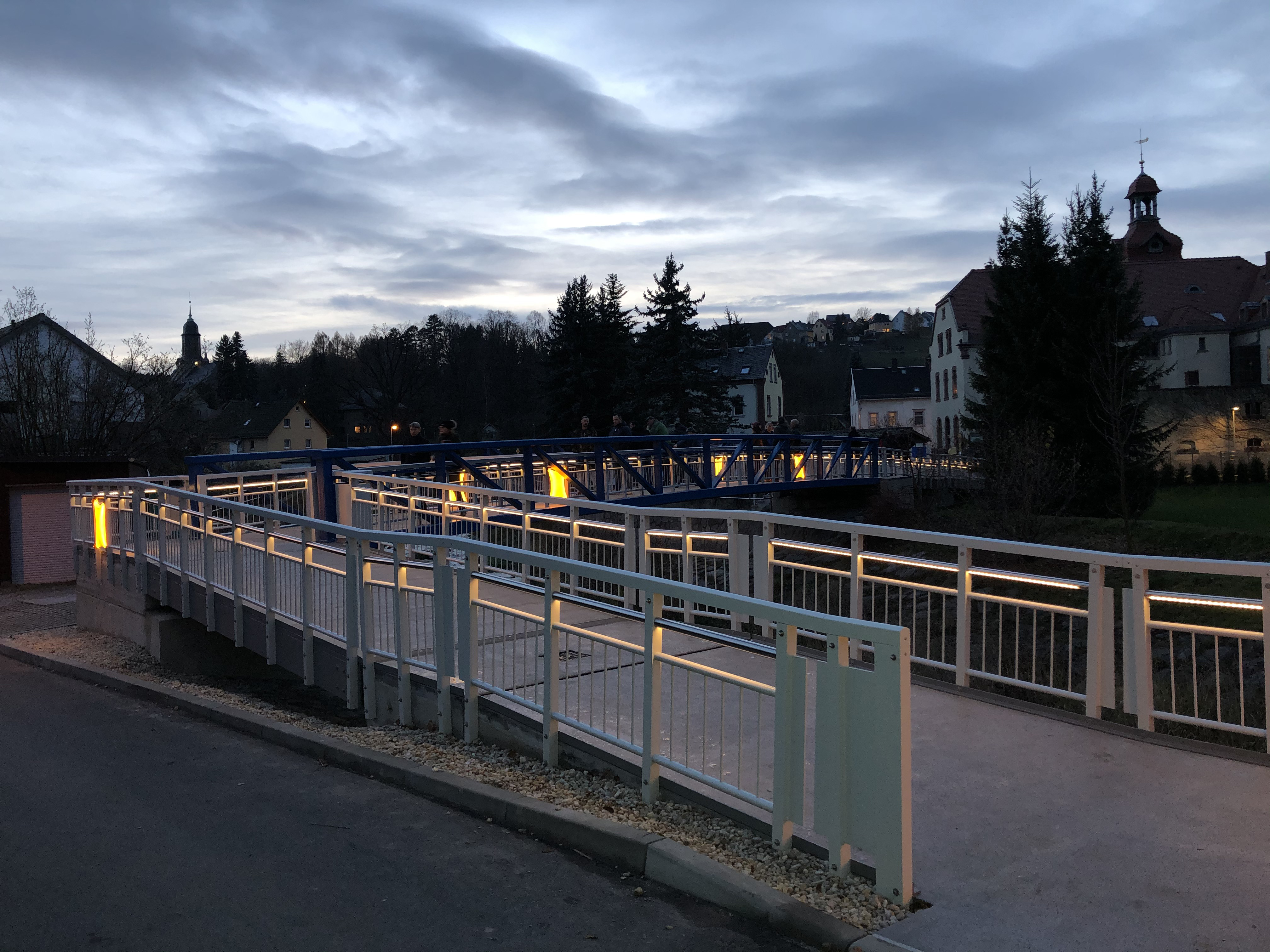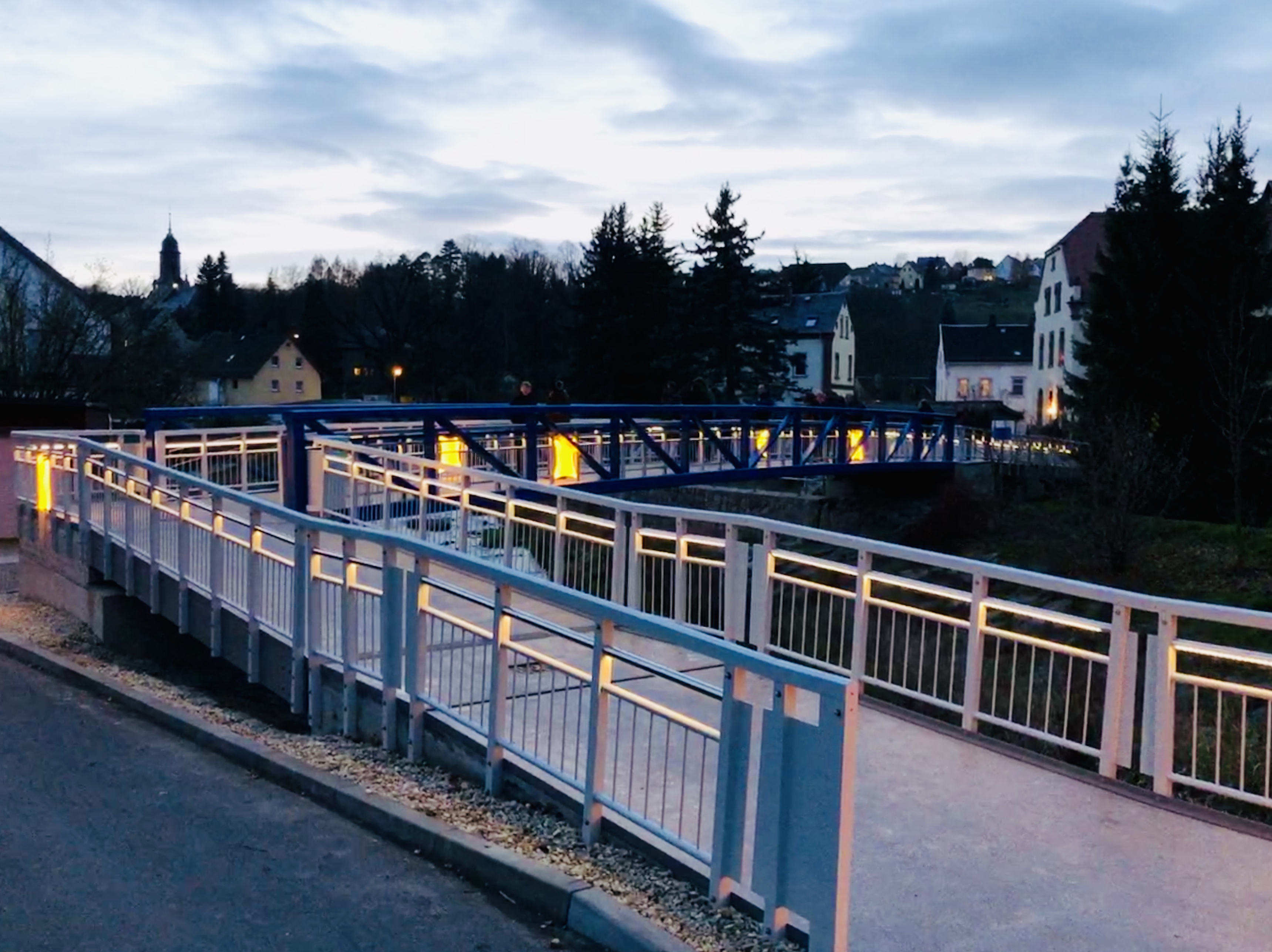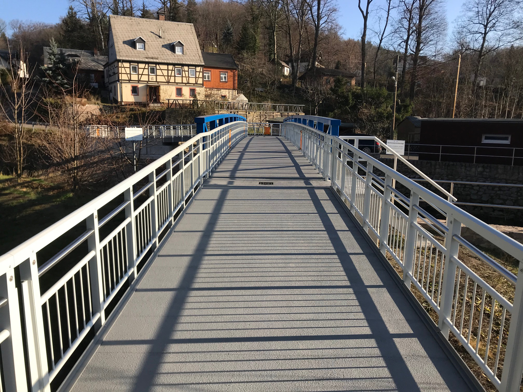 Most ma 73 metry długości i obejmuje rampę, która zapewnia wolny od przeszkód przejazd przez rzekę Zwönitz. Most został zbudowany przy użyciu efektywnych materiałów: profile z włókna szklanego (GRP) są odporne na korozję, a tym samym na działanie czynników atmosferycznych, słonej wody i promieniowania UV. Dzięki zastosowaniu tych trwałych profili z GRP wymagana jest jedynie minimalna konserwacja mostu, a przez cały okres jego użytkowania nie będzie konieczna kosztowna wymiana.
