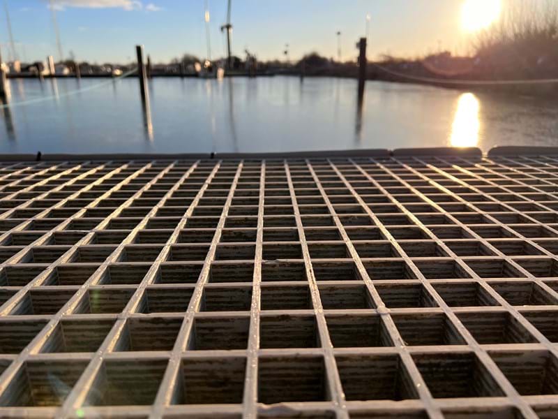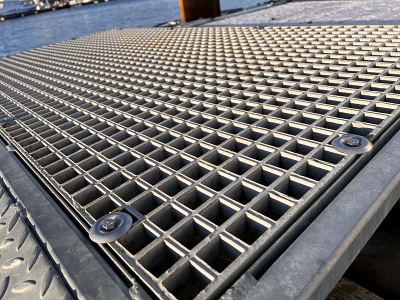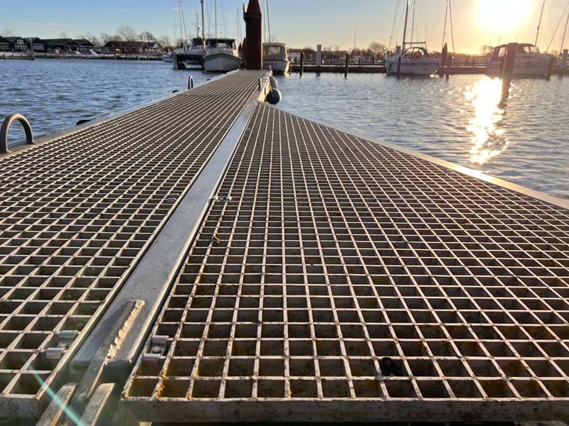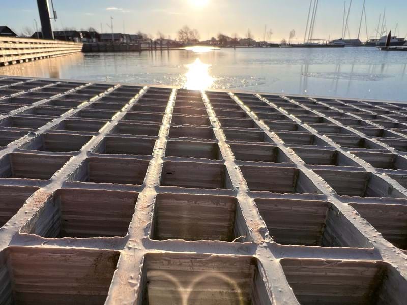 Marina Middelfart składa się z 550 miejsc do cumowania i 8 pływających pomostów z rampami na bazie włókna szklanego. Ponadto, są tam dwie drewniane pomosty, które wkrótce zostaną zastąpione bardziej trwałym materiałem. Chris zna zalety stosowania włókna szklanego w obszarze portowym, ponieważ jest ono odporne na warunki pogodowe i nie jest atakowane przez słoną wodę, jak drewno i ocynkowana stal z czasem. Włókno szklane zachowuje swoją siłę i trwałość z biegiem czasu, dlatego też dla kapitana portu Chrisa wybór krat z włókna szklanego na 8 pływających pomostów był właściwy.