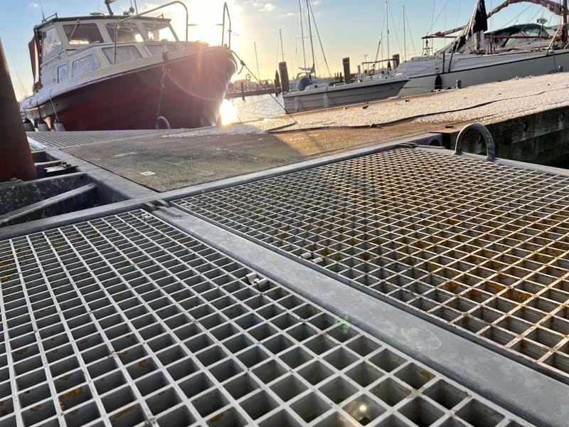 W porcie doskonale zdają sobie sprawę, jak dobrze kraty z włókna szklanego sprawdziły się w porównaniu z innymi materiałami w marinie, takimi jak drewno, które jest atakowane przez algi i gniło z czasem, i stal, która koroduje.