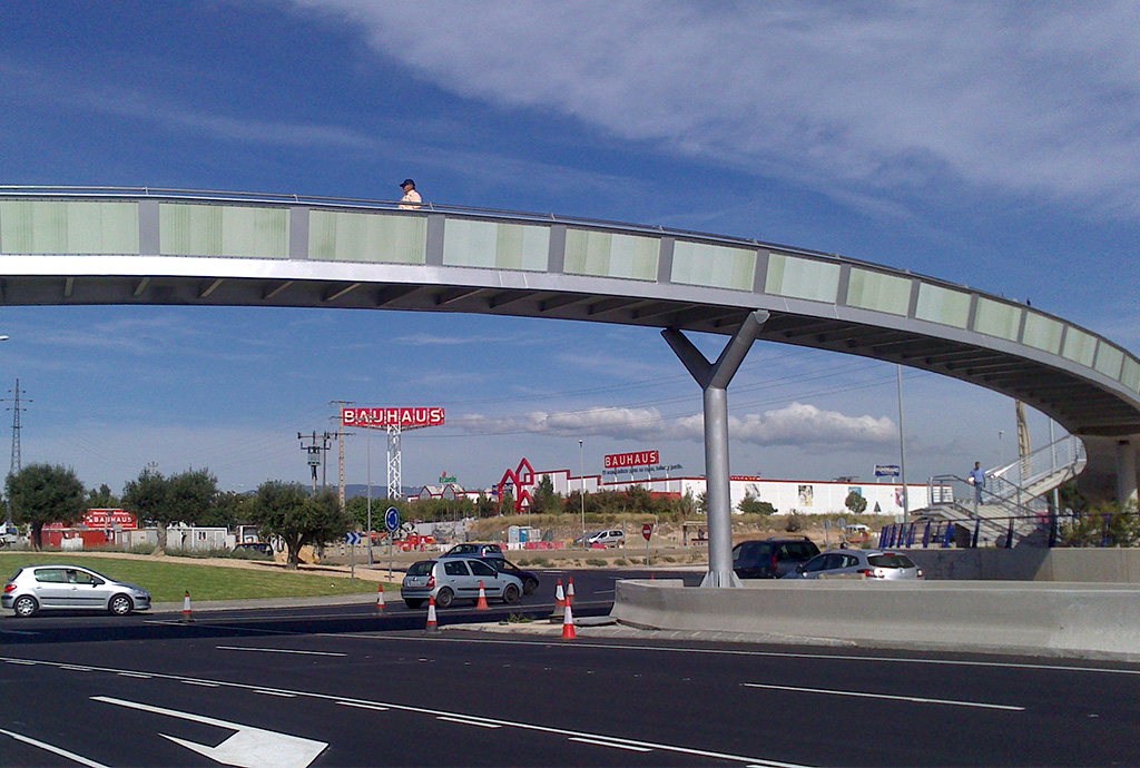 I den västra delen av Tarragona tar en mycket speciell bro fotgängare och cyklister över den livligt trafikerade motorvägen in till centrum. Med både däck och sidor klädda med genomskinliga Lay Light-plankor verkar bron nästan sväva över motorvägen.
